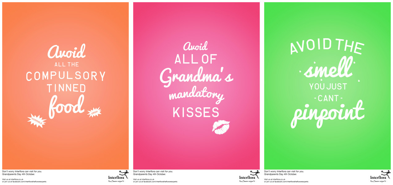 Insight – Turn the brief on its head, and actually look at how Interflora are a delivery service, meaning you dont actually have to visit you grandparents on Grandparents Day, you can simply let Interflora visit for you.