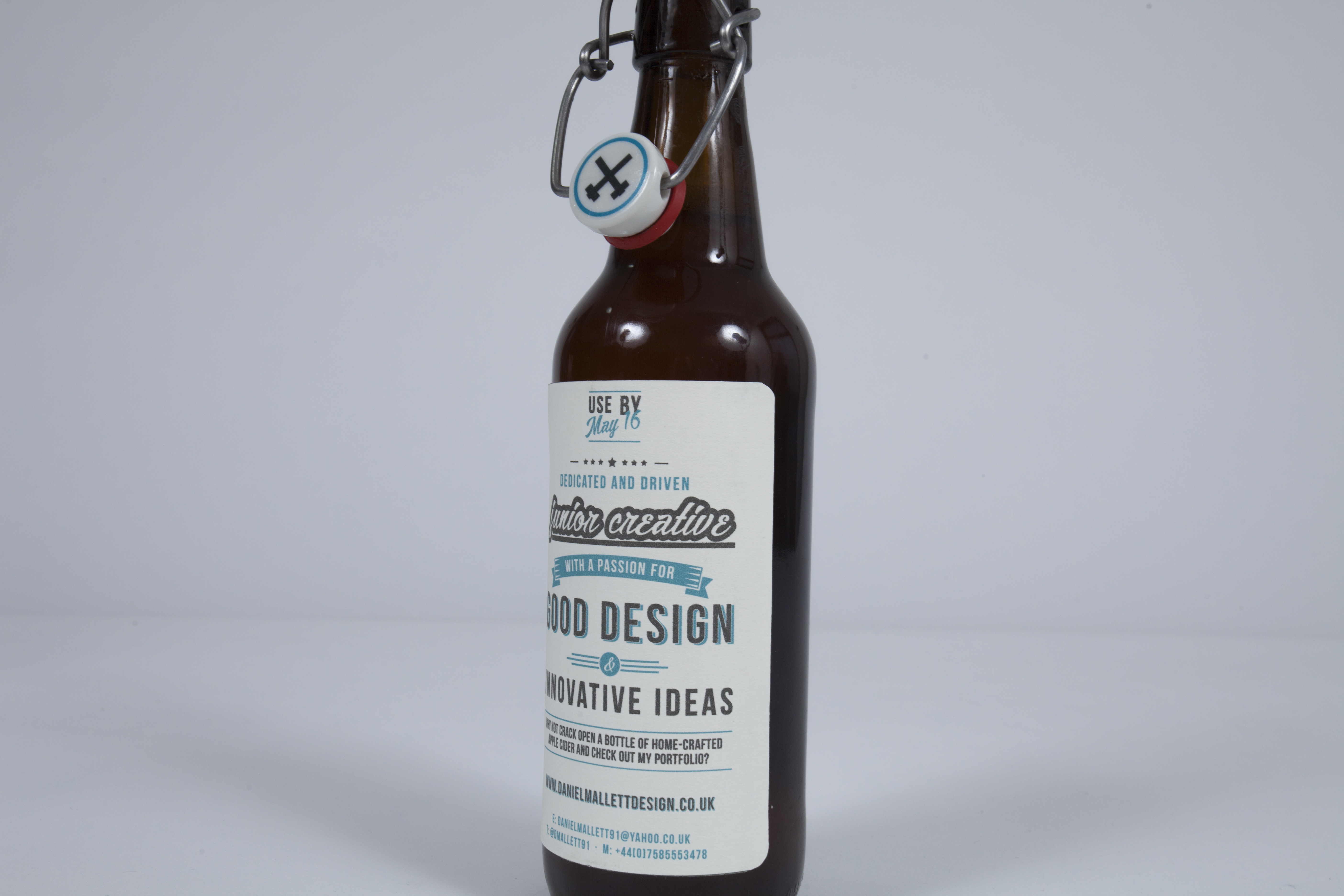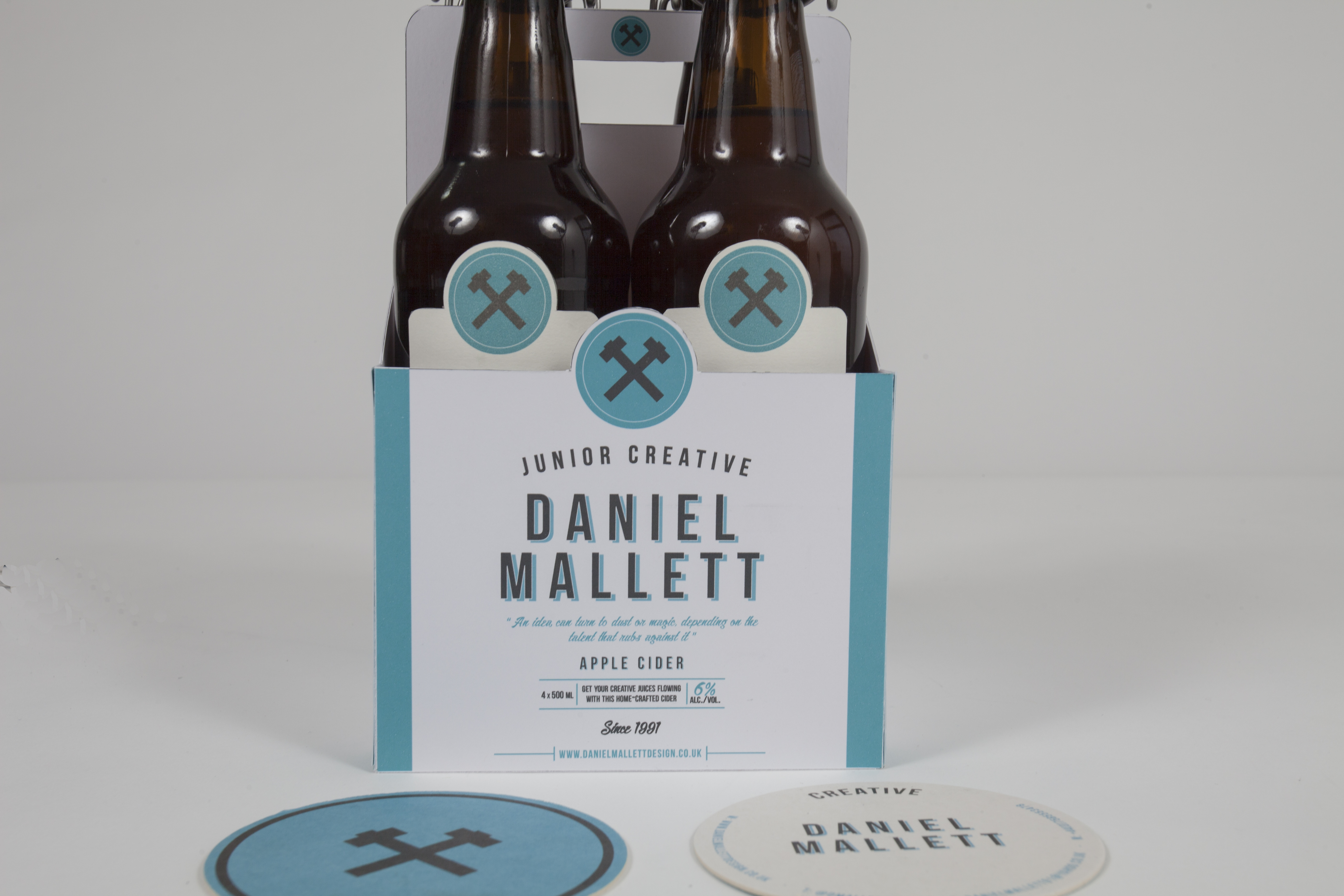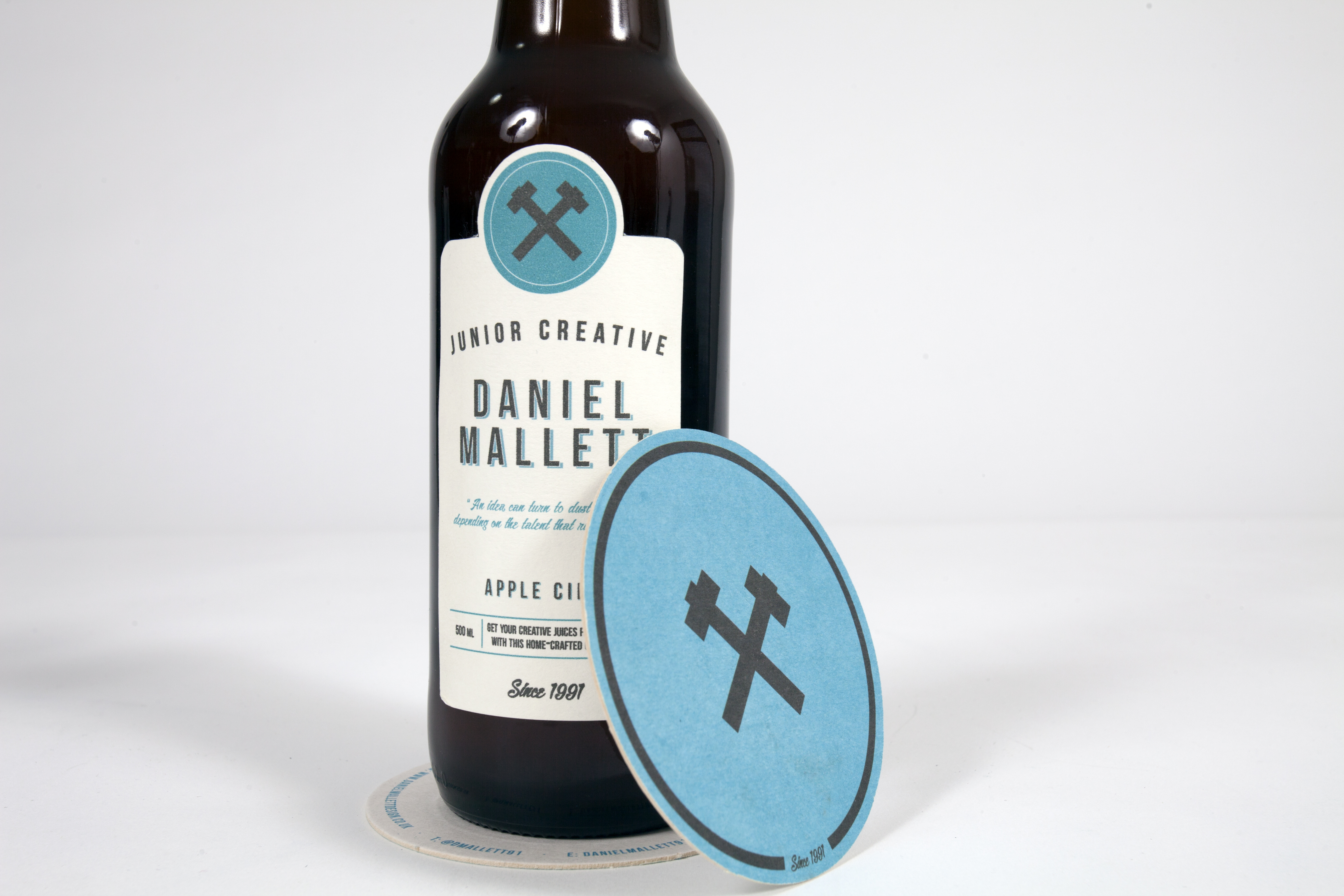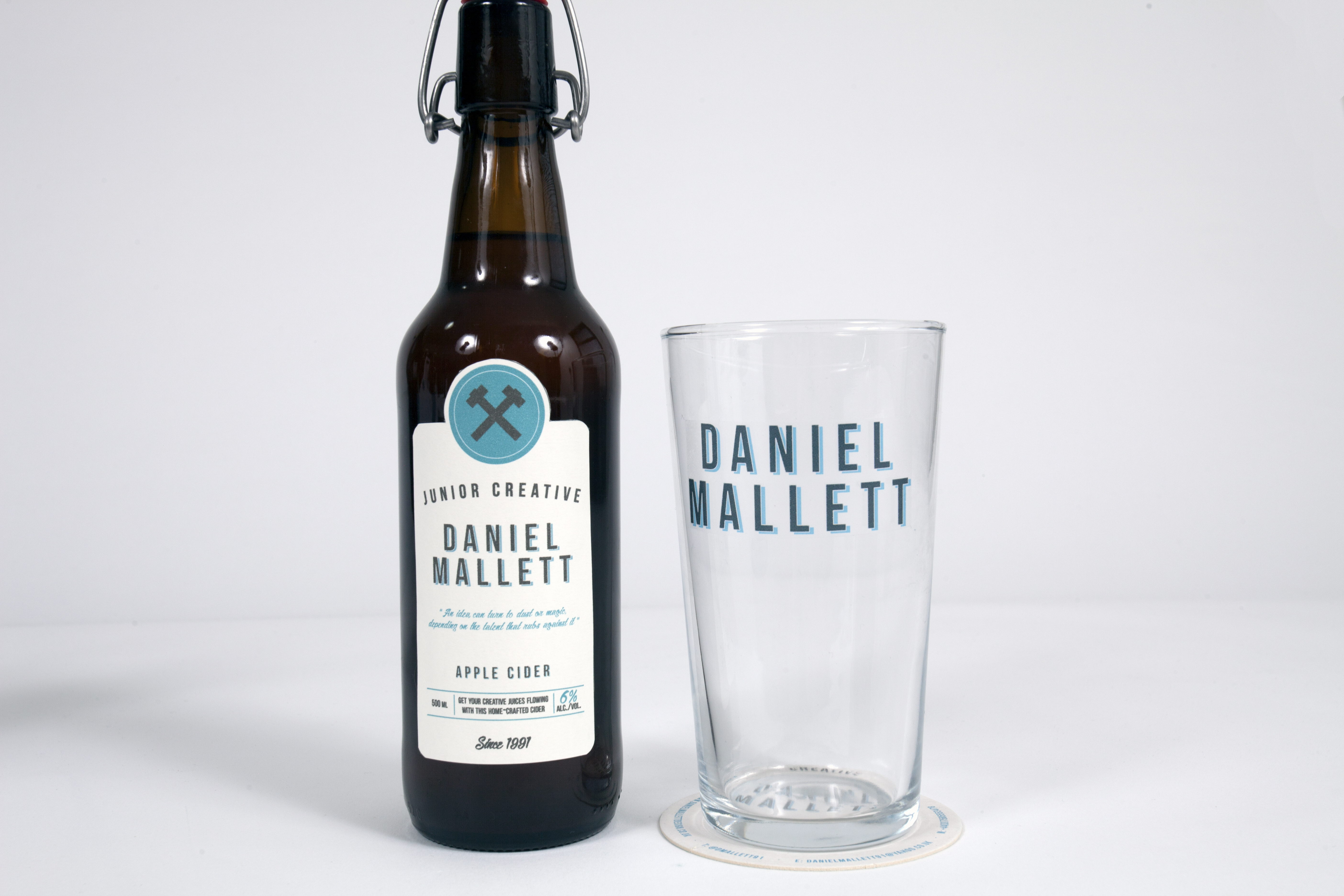 Insight – I looked at the drinking culture in advertising, as well as how my hometown of Norwich have recently been voted the real ale/cider capital of the UK, and decided to replicate this by home-brewing my own cider and using this to brand myself.